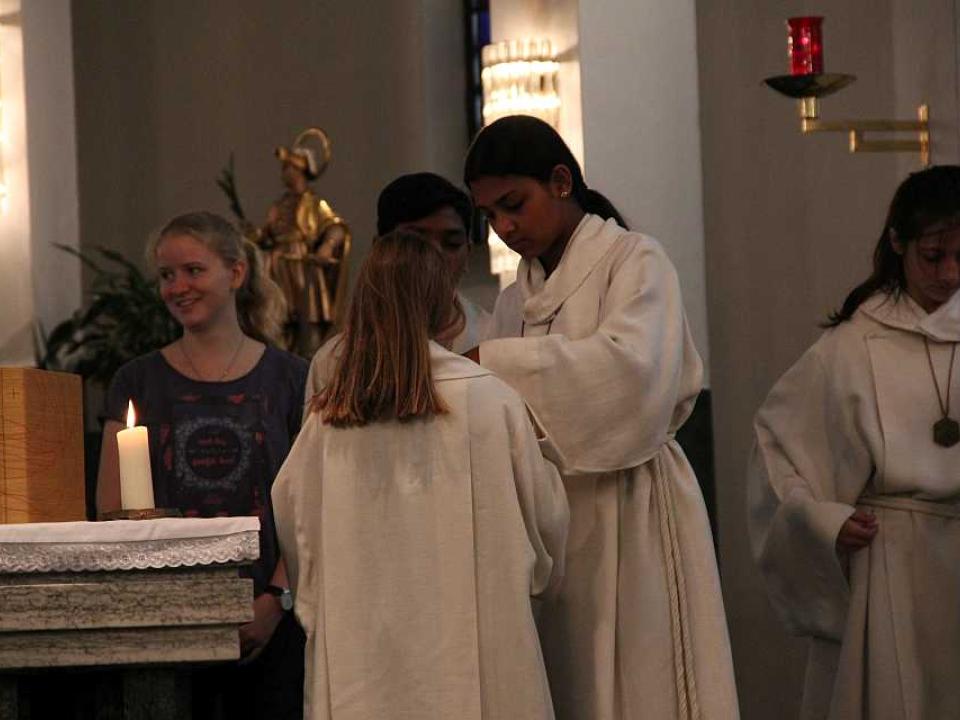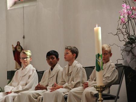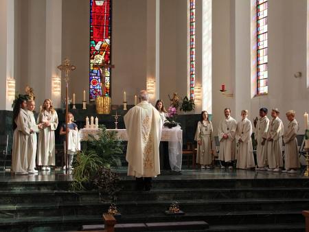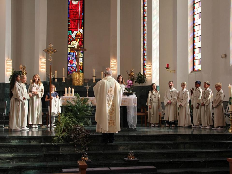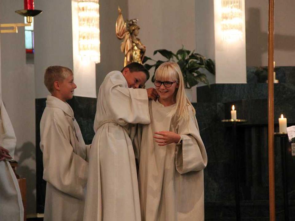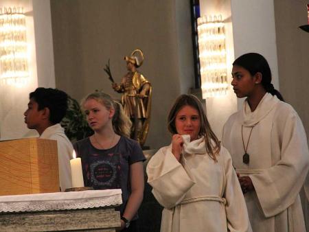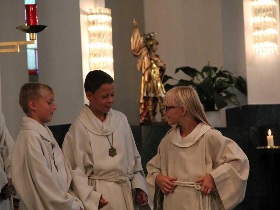 Jeder und jede, der die Erstkommunion empfangen hat, darf Ministrant oder Ministrantin werden. Die Ministranten sind im Gottesdienst im Einsatz. Im Gottesdienst helfen sie dem Priester oder der Seelsorger/in, die der Feier vorstehen. Sie tragen Kerzen, die Schale mit den Hostien zum Altar, den Kelch, das Kreuz oder den Weihrauch und machen so den Gottesdienst feierlicher.