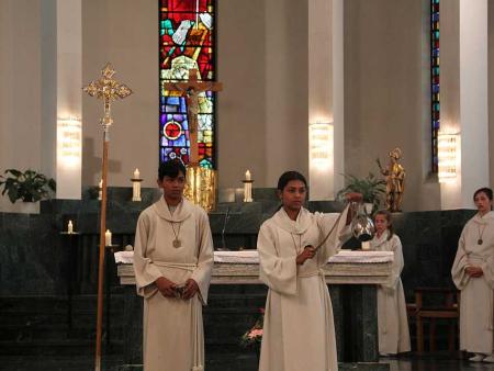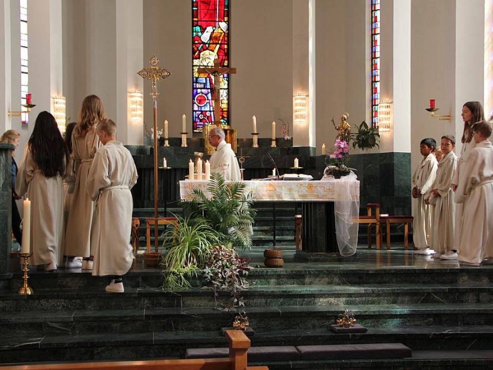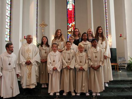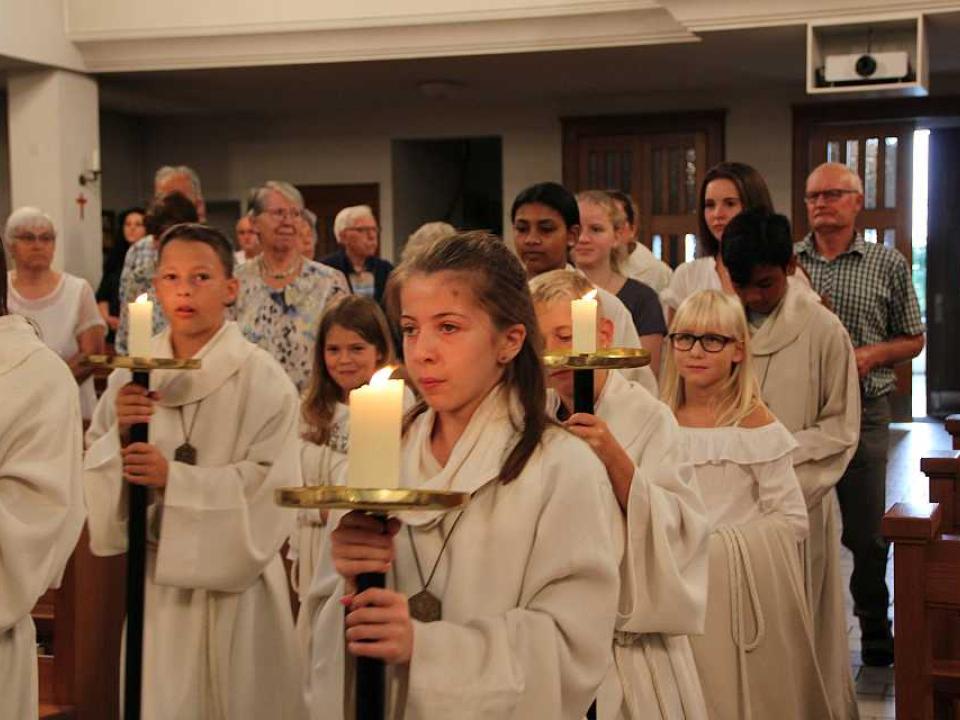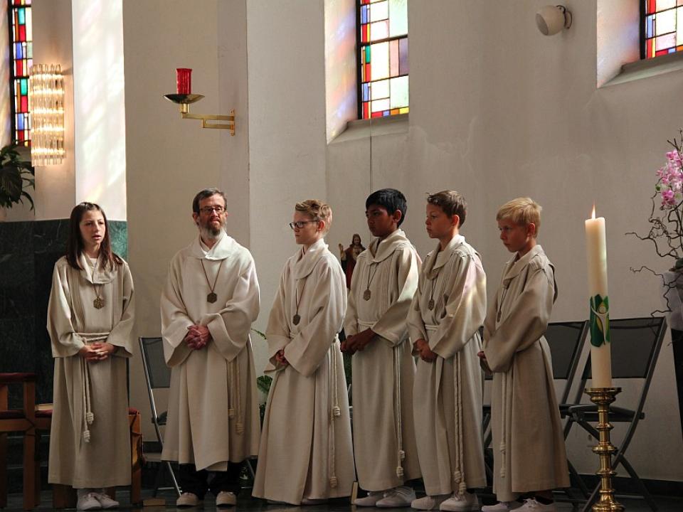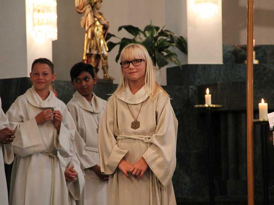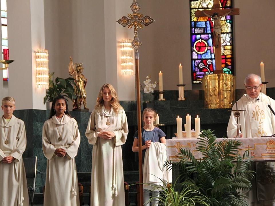 Jeder und jede, der die Erstkommunion empfangen hat, darf Ministrant oder Ministrantin werden. Die Ministranten sind im Gottesdienst im Einsatz. Im Gottesdienst helfen sie dem Priester oder der Seelsorger/in, die der Feier vorstehen. Sie tragen Kerzen, die Schale mit den Hostien zum Altar, den Kelch, das Kreuz oder den Weihrauch und machen so den Gottesdienst feierlicher.